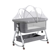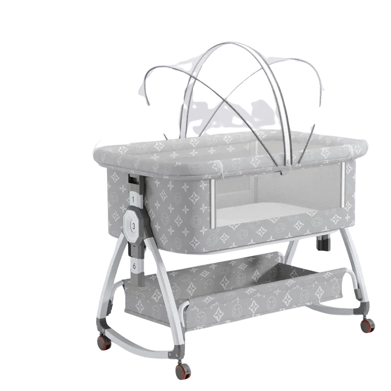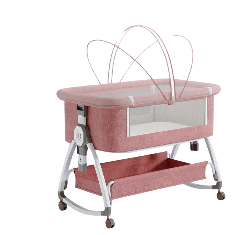 En praktisk och flexibel babysäng som är enkel att flytta och anpassa efter hemmets behov. Höjden kan justeras för att passa olika sängar och situationer, vilket gör nattning och tillsyn smidigare. Den rymliga designen ger barnet gott om plats att sova tryggt.