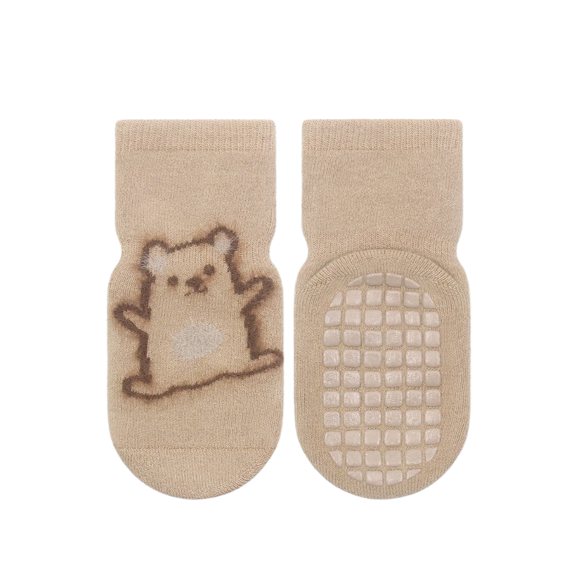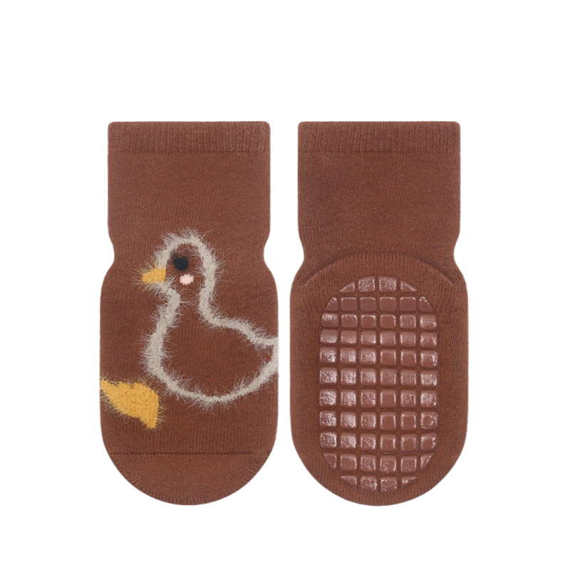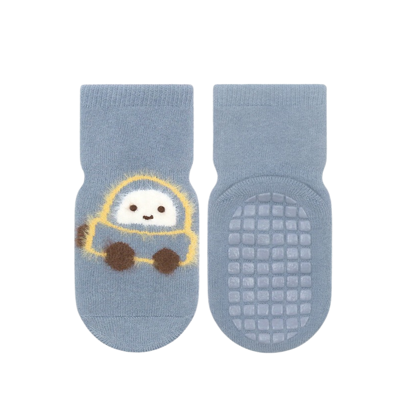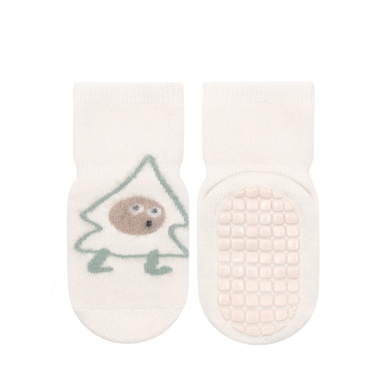 Mjuka och bekväma strumpor som håller barnets fötter varma under kyligare dagar. Den halkfria undersidan ger extra trygghet när barnet rör sig, kryper eller går på hala golv. De lekfulla trycken ger ett glatt och barnvänligt uttryck.