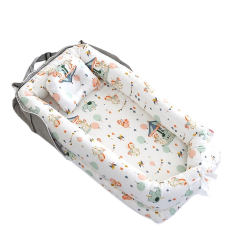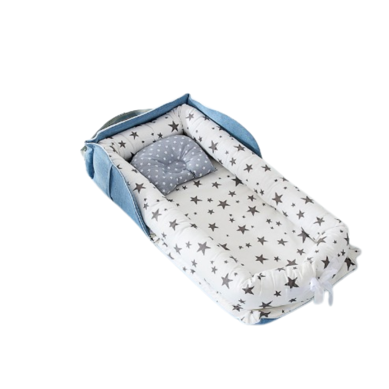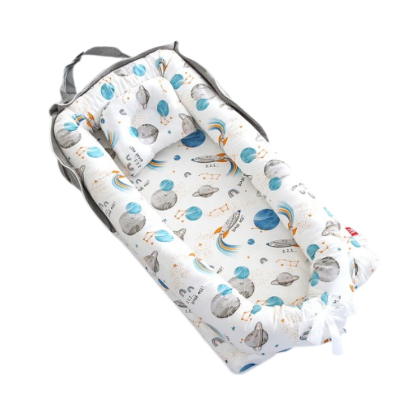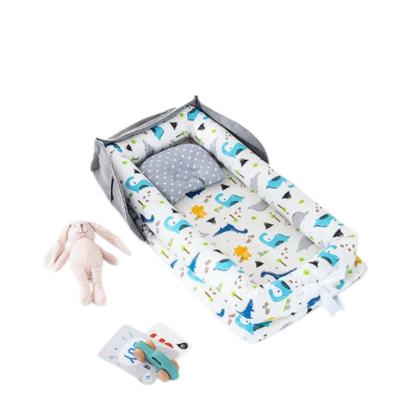Babynestet är enkelt att flytta runt i hemmet och passar perfekt i sängen, på soffan eller på golvet under uppsikt. Ett praktiskt val för barnets första tid.