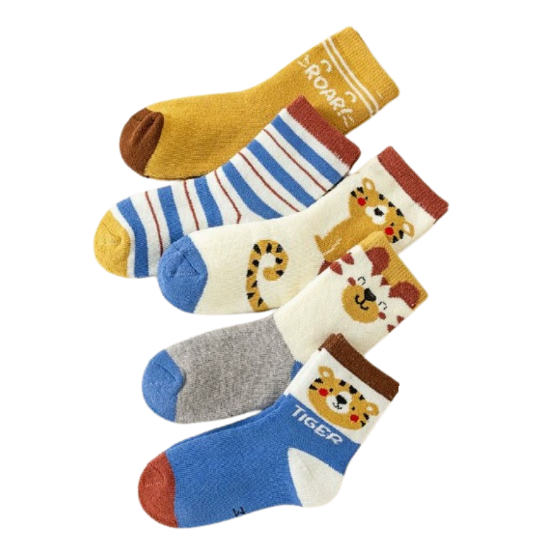 I detta pack ingår fem par strumpor som är enkla att använda i vardagen. Ett praktiskt val för hemmet, förskolan och lugna stunder inomhus.