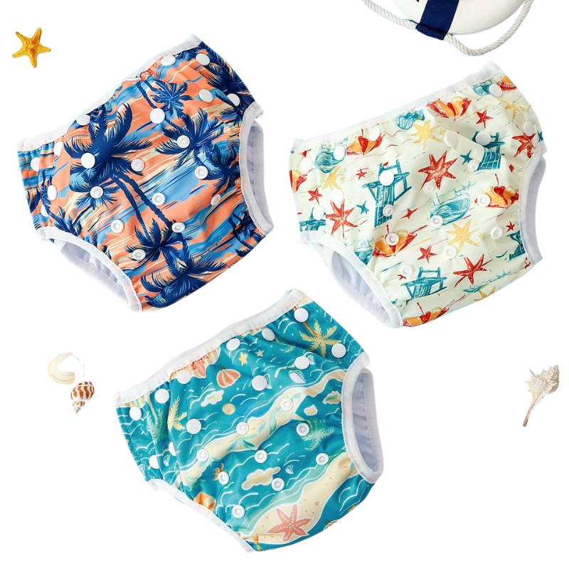 Badblöjorna är enkla att använda och kan användas om och om igen. Ett smidigt alternativ för familjer som vill ha en praktisk lösning för bad och simning.