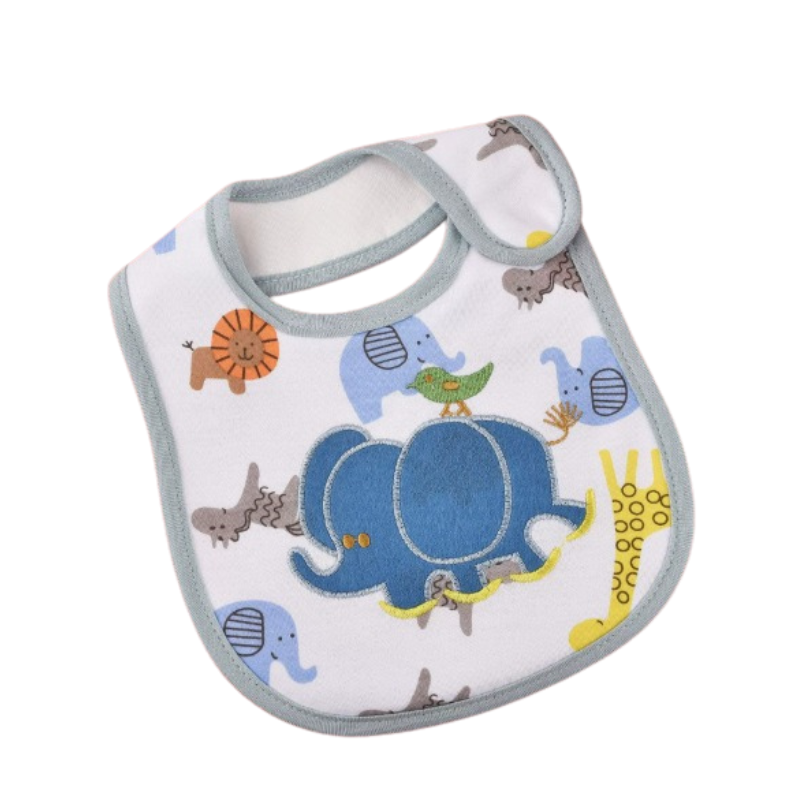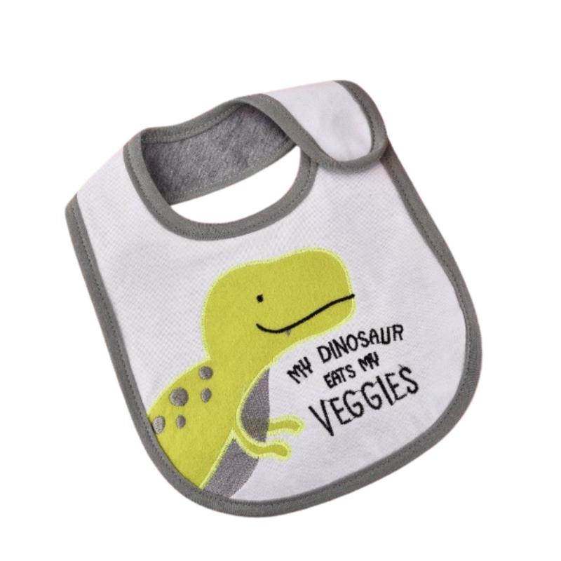 Ett praktiskt och lekfullt matförkläde som skyddar barnets kläder vid måltider. Den täckande formen gör det enkelt att hålla rent, samtidigt som de söta motiven gör matstunden lite roligare.