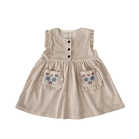 En mjuk och söt klänning med fint broderade detaljer som ger ett stilrent och charmigt uttryck. Tyget ligger behagligt mot huden och är skonsamt för små barn. Passformen är luftig och gör det enkelt att röra sig under lek och vardag.