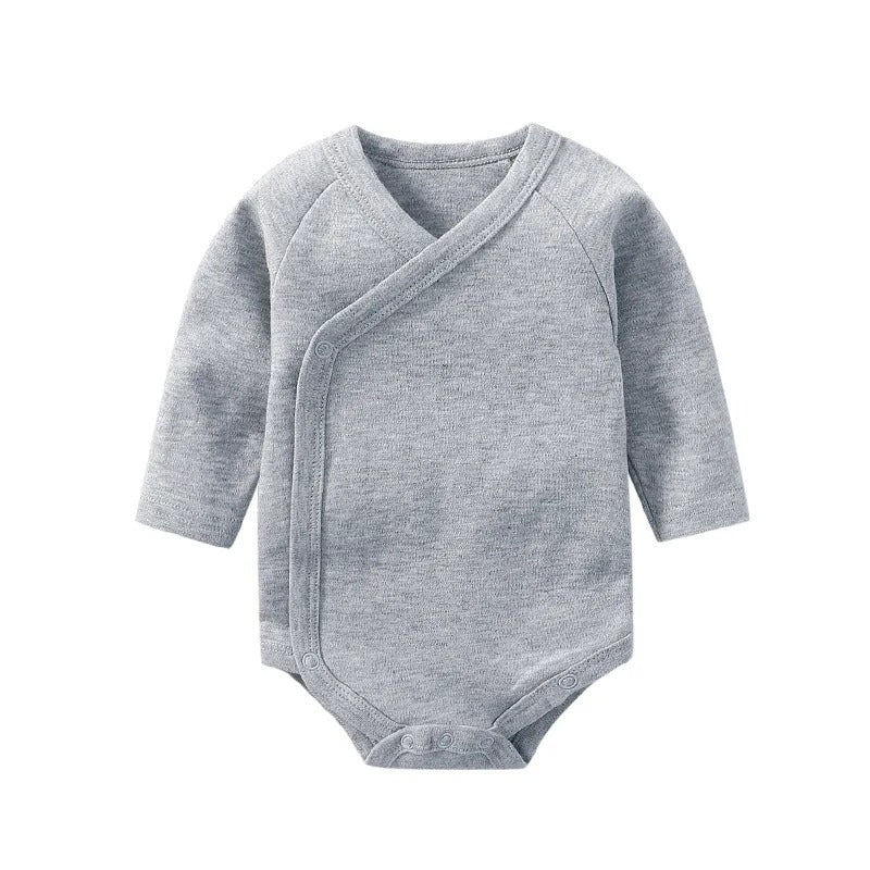 En mjuk och långärmad omlottbody som är särskilt anpassad för nyfödd. Den snedställda knäppningen framtill gör bodyn enkel att ta på utan att behöva dras över huvudet. En trygg och praktisk lösning under barnets första tid.