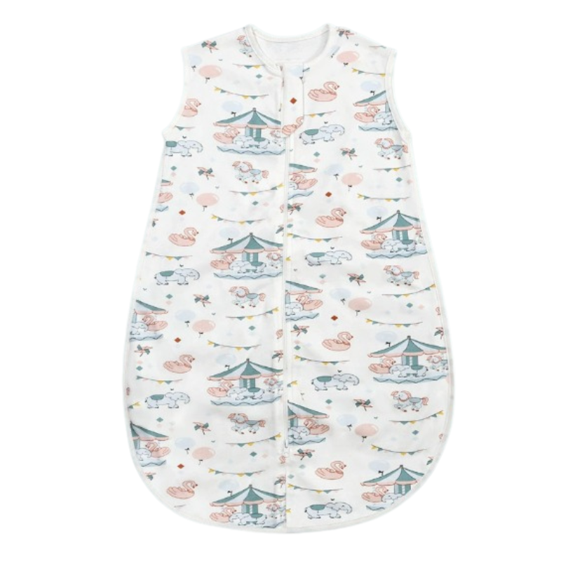 En lätt sovsäck som håller barnet täckt utan att kännas varm eller tung. Den luftiga designen ger en behaglig och trygg känsla under vilan. Passformen är rymlig och låter barnet röra sig fritt utan att täcket sparkas av.