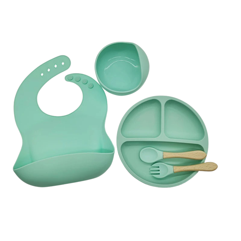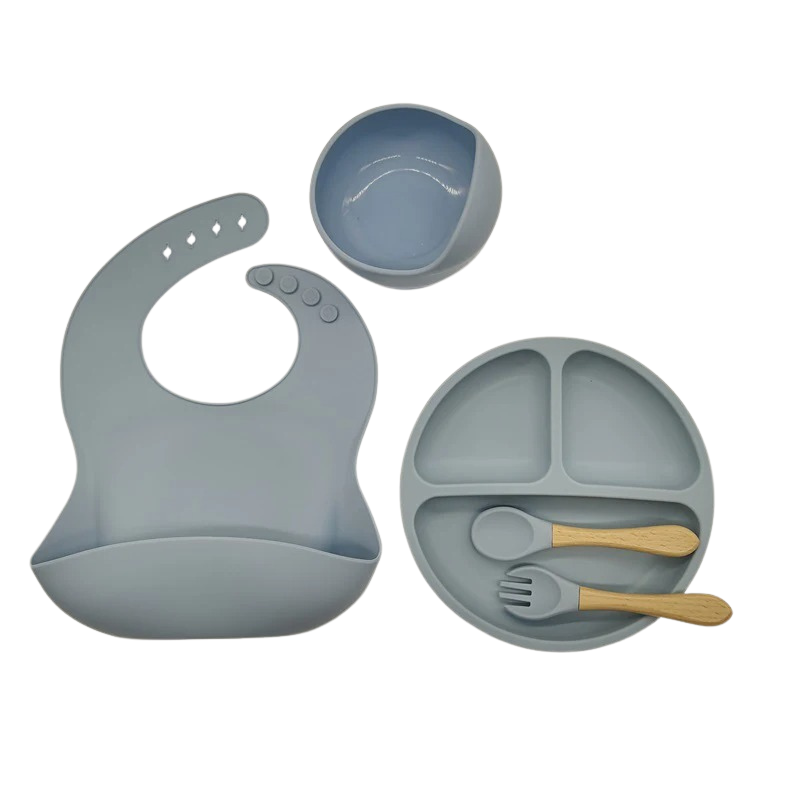 Ett komplett set för barnets måltider som gör matstunden enklare och mer strukturerad. Delarna är anpassade för små händer och hjälper barnet att äta själv på ett tryggt sätt. Sugfunktionen håller delarna på plats och minskar spill.