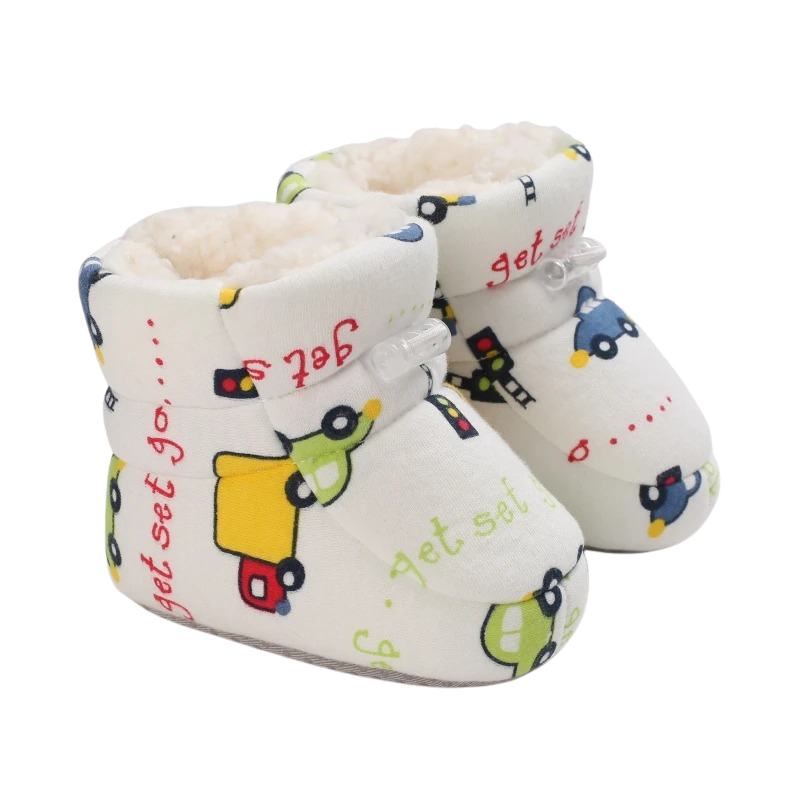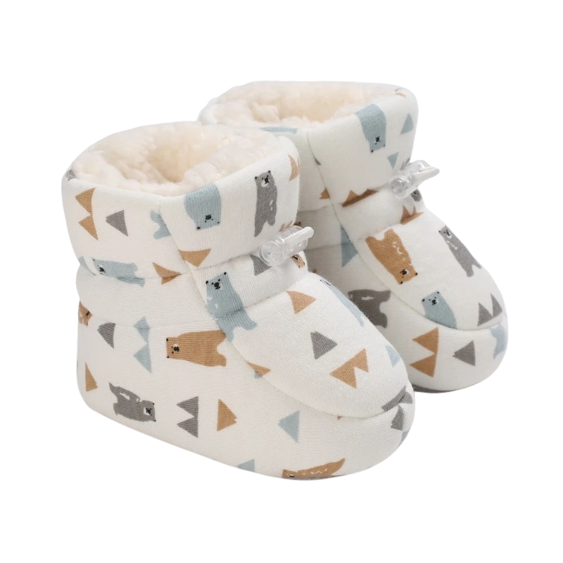 Varma och bekväma vinterskor för baby som håller små fötter skyddade under kalla dagar. Skorna är utformade för att ge trygghet när barnet rör sig, kryper eller tar sina första steg. Det lekfulla motivet ger ett mjukt och barnvänligt uttryck.